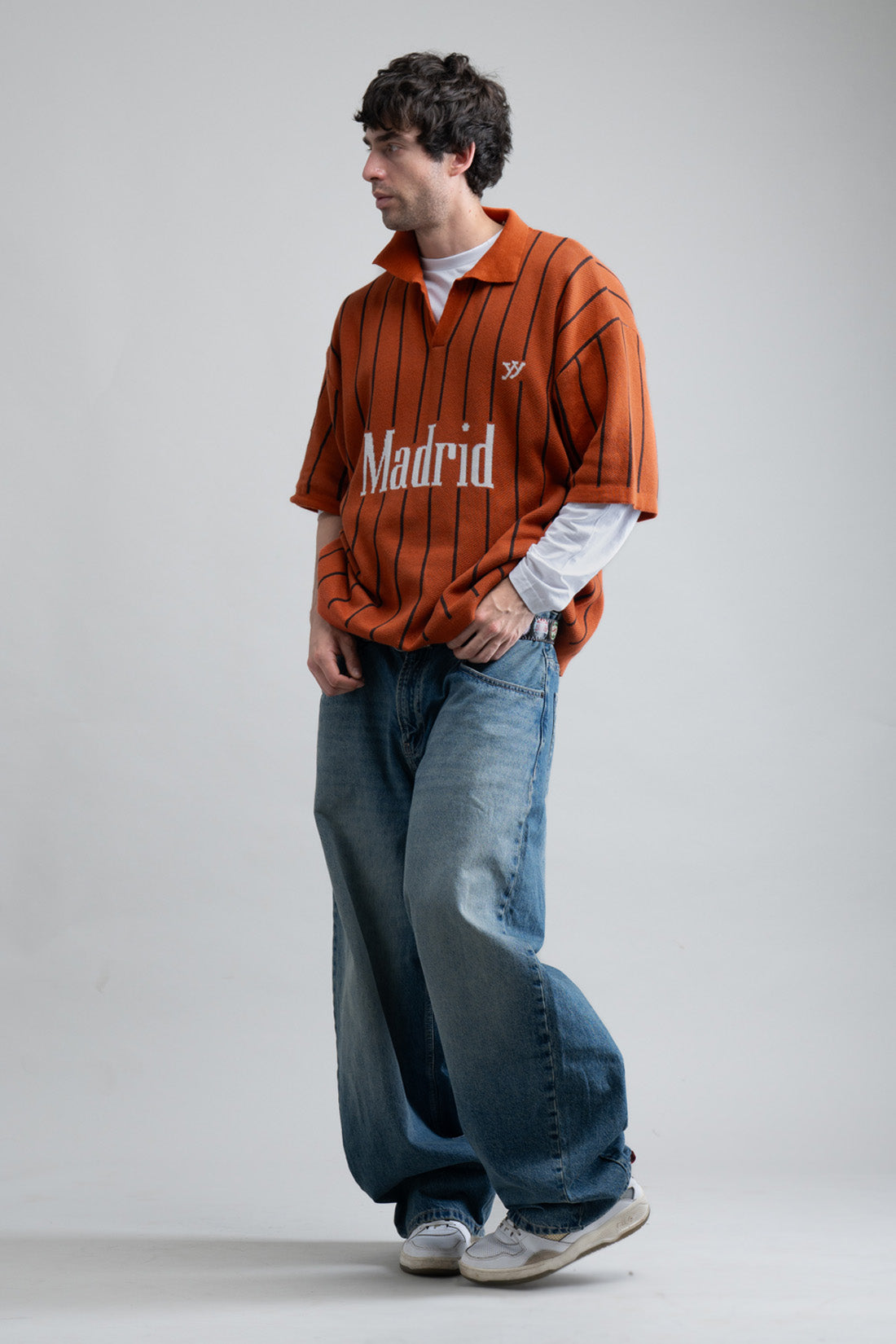 Drop Shoulder Striped Fine Knit Polo | Forest Green, Drop Shoulder Striped Fine Knit Polo | Brown & Madrid Jacquard Fine Knit Polo | Rust Orange